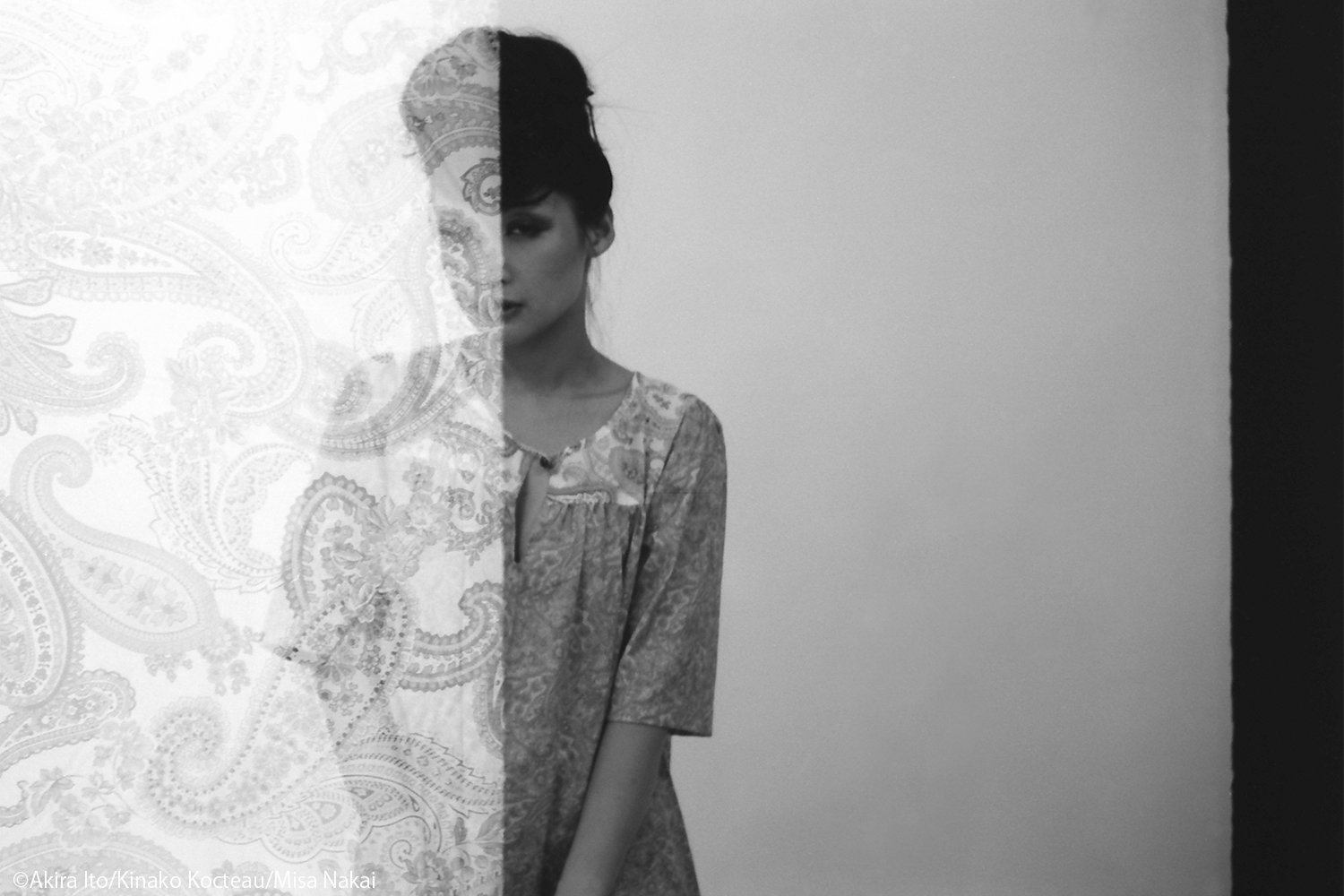 このたび、フィルムカメラとデジタルカメラで、デザインが生まれる瞬間、その刹那な世界を撮影したいと考えた。ここは、可能性の世界であり、未確定の世界である。フィルムカメラでは多重露光を行い、扉を開くイメージで一巡目と二巡目にズレを作った。行き過ぎた多重露光は、写真がテキスタイル図案へ変容していく過程であるようにも感じる。デジタルカメラでは、精錬される前のファッションデザインの具現化をイメージした。そして、それらは私自身の立ち位置、ファッションデザインの領域の中で表現を完成させたいと考えた。アート表現で終わるのではく、この行動からきちんとプロダクトが製造されるイメージである。